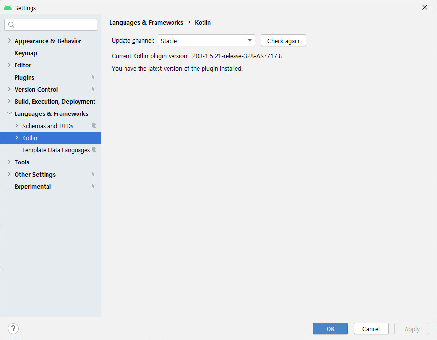 ※ 안드로이드 스튜디오에서 코틀린 버전 확인 방법