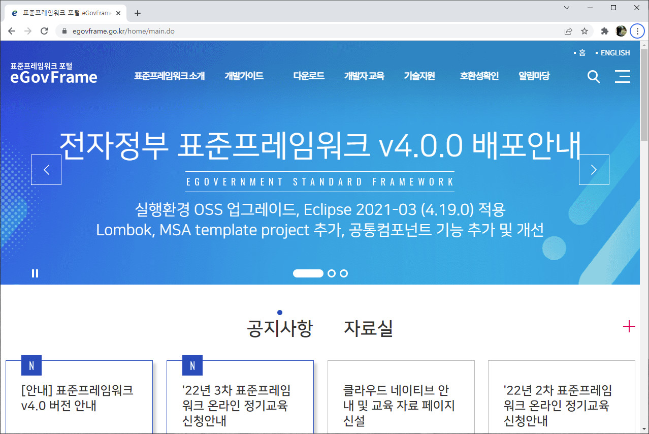 - 표준프레임워크 포털(https://www.egovframe.go.kr/) 로 가서 다운받습니다.