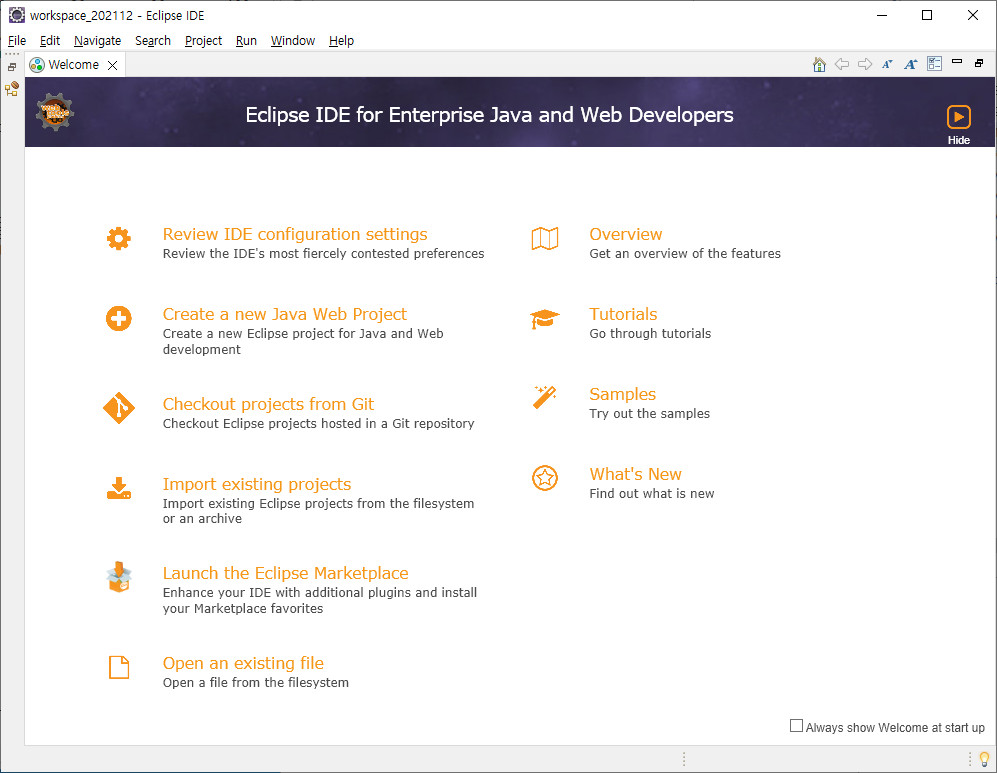 지금까지 이클립스 최신버전 2021-12 버전을 설치해 보았습니다.