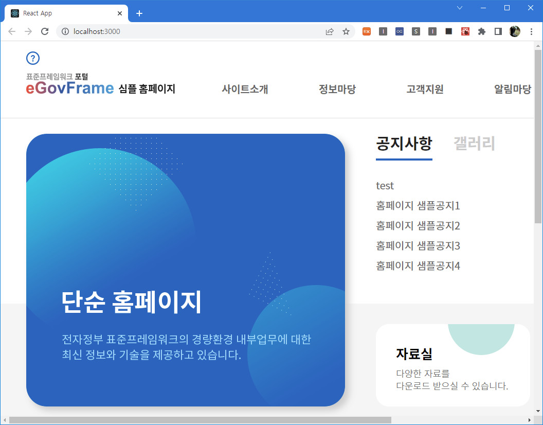 전자정부 표준프레임워크 v4, Boot와 React를 사용하는 Simple Homepage 템플릿 두 번째 프론트엔드 부분을 설치해보겠습니다.