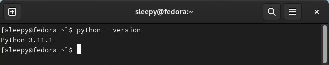 Fedora 37 Workstation을 설치하면 기본적으로 Python 인터프리터가 설치되어 있었습니다. 아래 명령어로 설치된 python을 확인할 수 있습니다. 설치된 python의 버전은 3.11.1이었습니다.