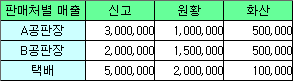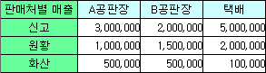 아래와 같은 표가 있습니다. 행은 판매처이고 열은 품종으로 되어 있습니다.